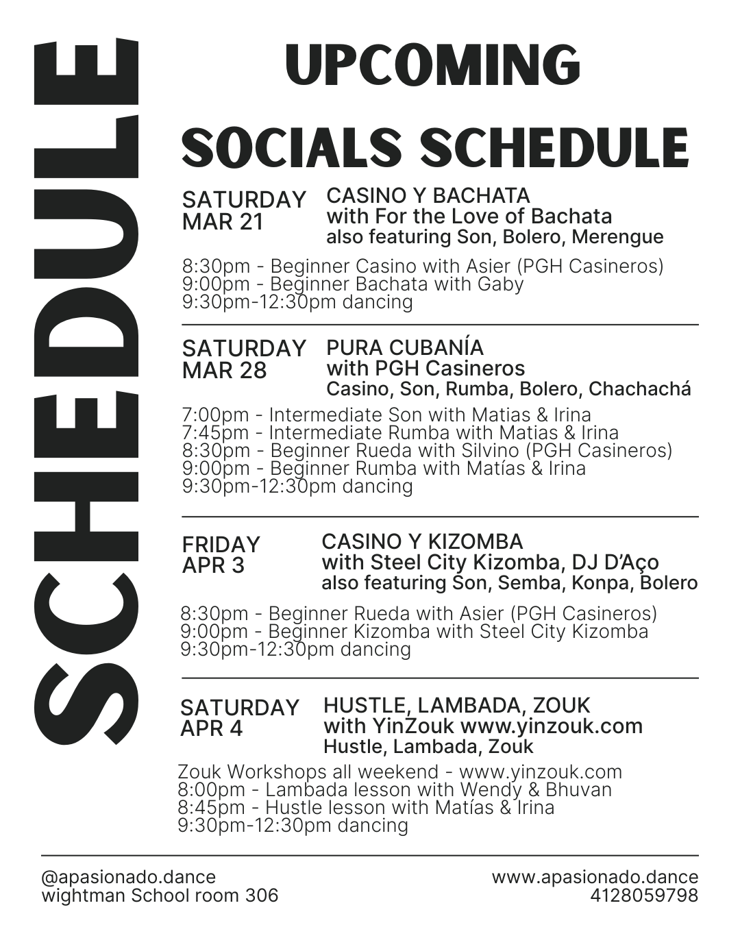 Whether you are an absolute beginner looking to learn how to dance, or an experienced veteran social dancer wanting to take your dancing to the next level with new combinations and techniques, or a competitor looking to improve your quality on the floor, or someone else altogether, let us know how we can serve you best.